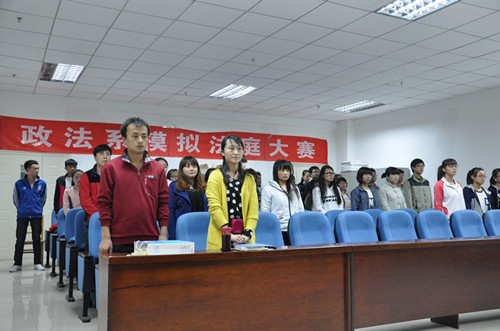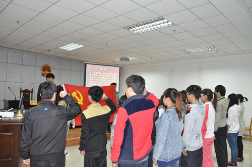 2014年4月2日,政法系 12级第一批预备党员入党宣誓政法系模拟法庭隆重举行。