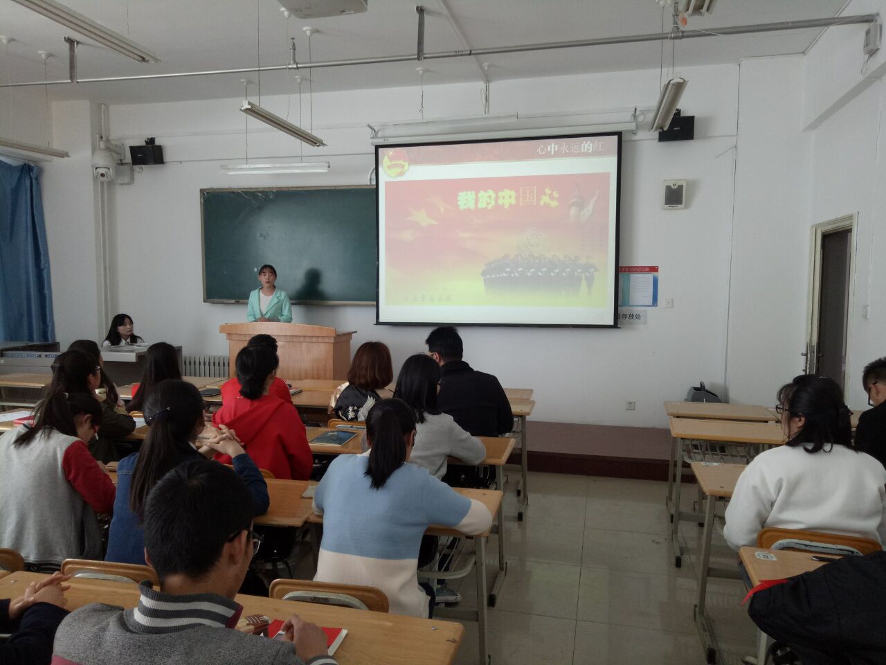 主题团日活动中,校团委副书记刘雨鑫老师,社会管理公司分团