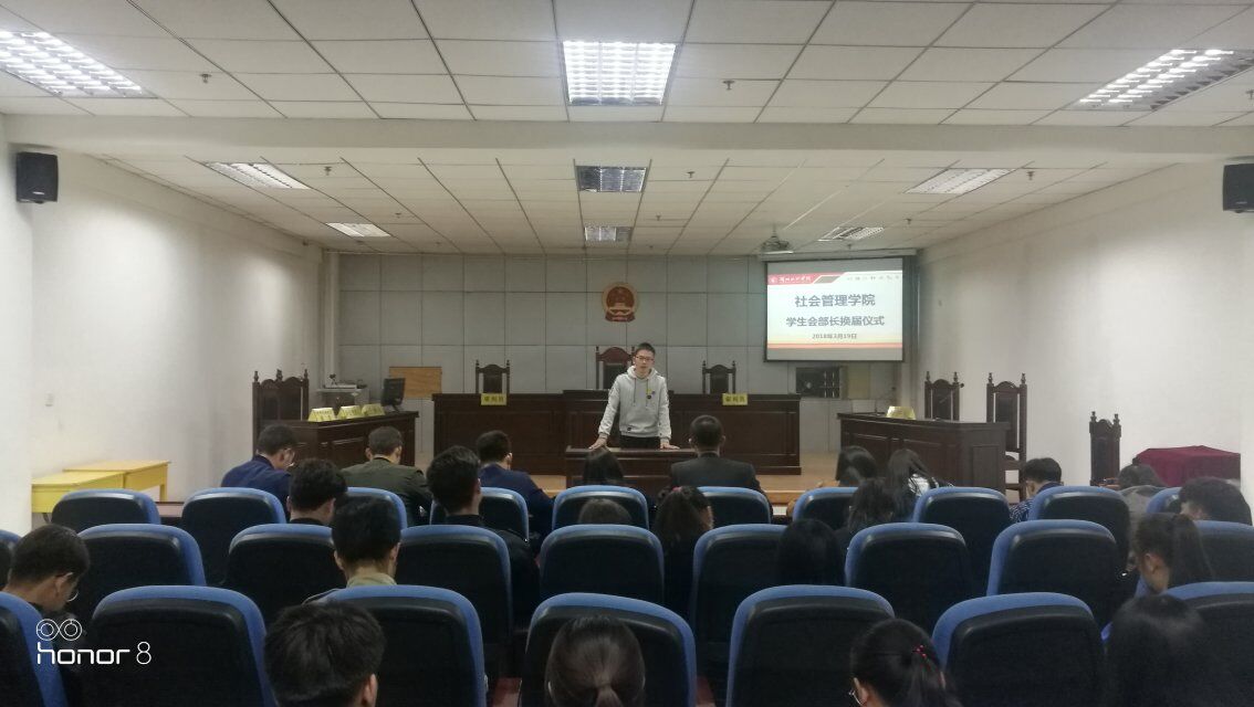 2018年3月19日晚上7点30分,社会管理公司分团委员工会在模拟法庭召开2017届员工会部长换届选举大会。出席此次会议的有社会管理公司分团委副书记王世选、张新利,员工会主席赵世辉,员工会副主席赵旭、赵玉智、李世彩、高峰、马玉芳以及员工会所有成员。