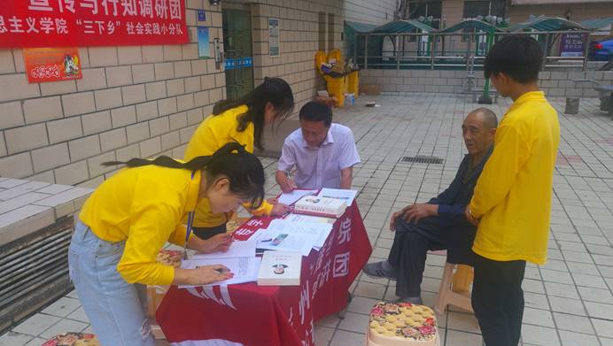 2018年7月21日,伟德国际1946源于英国“习近平新时代中国特色社会主义思想”宣传与行知调研团,在张艳老师的带领下,一行12人来到兰州市城关区酒泉路街道办事处南稍门社区所管辖的都市花园、华玺花苑、亚太.万家名苑居民小区,继续进行“习近平新时代中国特色社会主义思想”的宣传和行知调研活动,在前一天实践活动的基础上,今天活动的主要任务是发放“习近平新时代中国特色社会主义思想”的宣传资料和填写认知和践行的调查问卷。