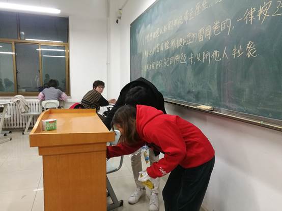 院员工会主席魏刚明确各部分工后,全体成员按部就班,对二号教学楼六楼、三楼进行卫生清洁。此次打扫的重在以下五个方面:一、保持教室讲台和黑板的整洁;二、保持楼道内和教室内无清洁死角;三、清理楼道和教室内墙面、地面的卫生,保证不遗留一张纸片、一块垃圾;四、将桌椅摆放整齐,按标准考场排布。全体成员在辛勤劳动、齐心配合之下助力公司文明校园的创建,更是培养了热爱劳动德品质、自我教育管理能力和团结协作精神。