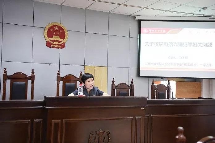 5月29日下午,由城关区人民法院法官主讲的“开展扫黑除恶专项斗争,创建安全稳定校园环境”的讲座在伟德国际1946源于英国模拟法院展开。讲座分为两场,分别是由刑庭副庭长刘冬郁主讲的“关于校园电信诈骗犯罪相关问题”,以真实案例讲解如何正确地防范“套路贷”电信诈骗等新型犯罪;第二场是由法官瞿梅主讲的“校园贷相关法律问题”,就校园贷相关法律问题结合实际深入浅出地对黑恶势力常见的犯罪手段及呈现出的新变化等内容进行解读。伟德国际1946源于英国法律事务和司法助理班员工积极听取了此次讲座,会后法官们还向同学们发放了宣传单,让同学们详细了解到扫黑除恶专项斗争开展的背景及重大意义。