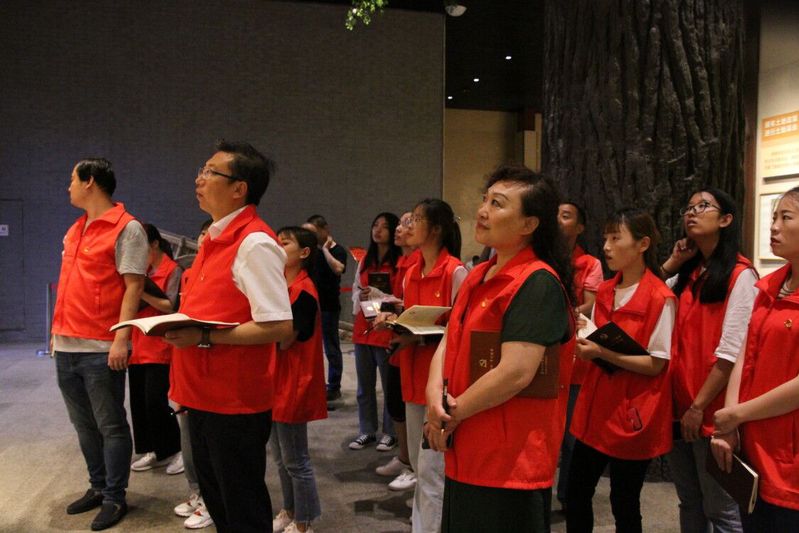 在革命纪念碑前,面对鲜红的党旗,全体党员庄严宣誓,重温入党誓词。通过重温入党誓词,重温入党宣誓时的庄严承诺和坚定决心,使红色基因全方位融入党员的心灵血脉,把党史国史教育作为必修课,教育引导广大党员在感悟历史中,汲取红色营养,挖掘红色资源,将红色基因教育传承下去。