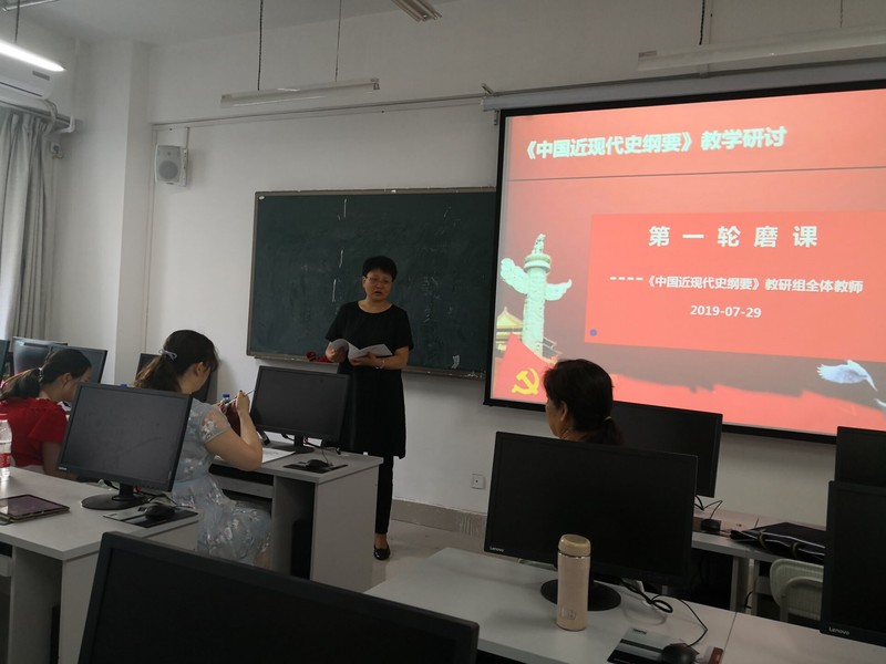 为了更好地迎接本科合格评估,实现以评促建,贯彻落实公司“教学磨课”和“五说”活动要求,有效提升思政课教学质量,2019年7月29日上午,马克思主义主义公司《中国近代史纲要》教研室举行第一次磨课活动。整个磨课活动由教研室主任费翔老师组织,教研室共六位老师参加了此次磨课活动。