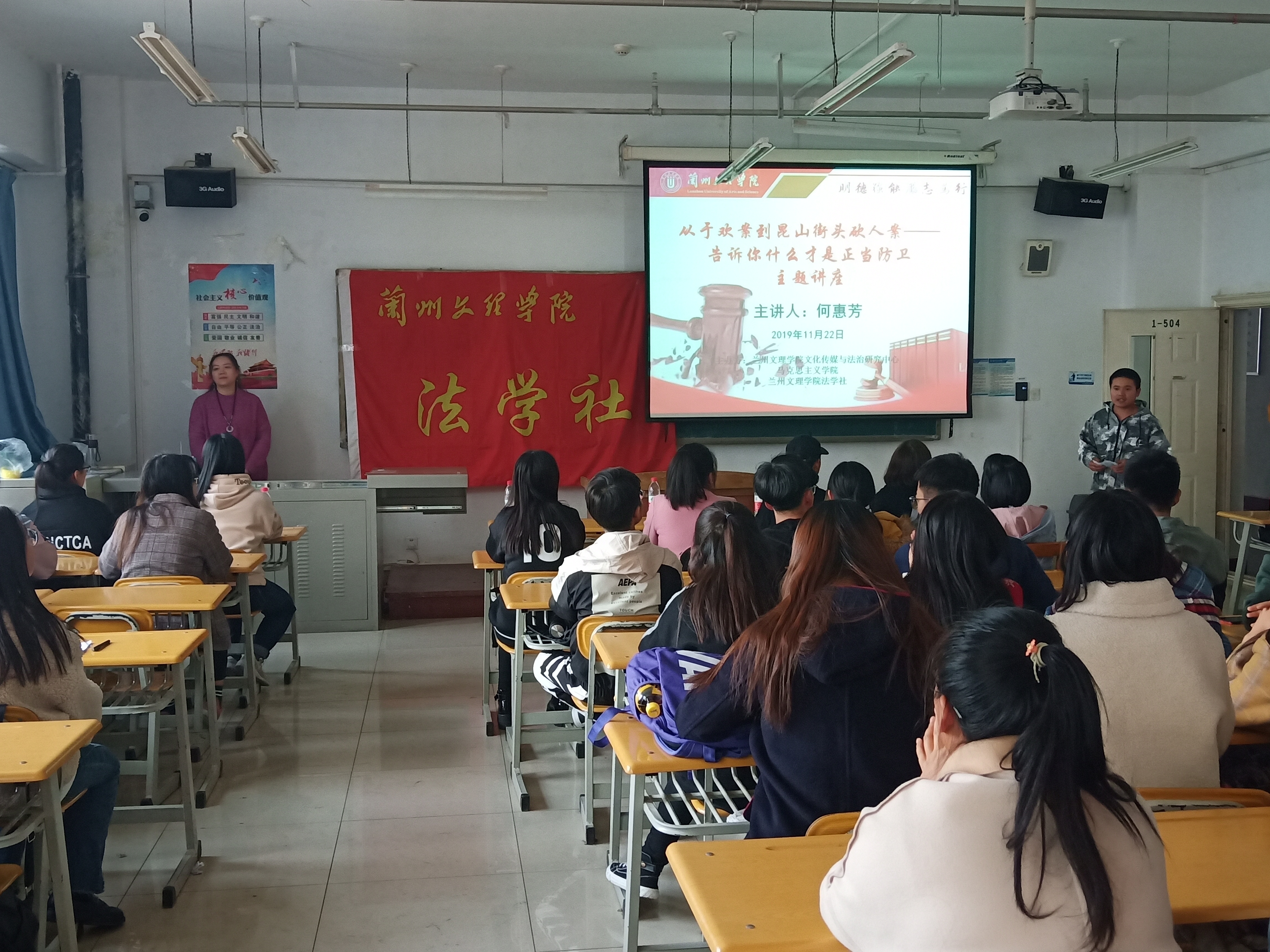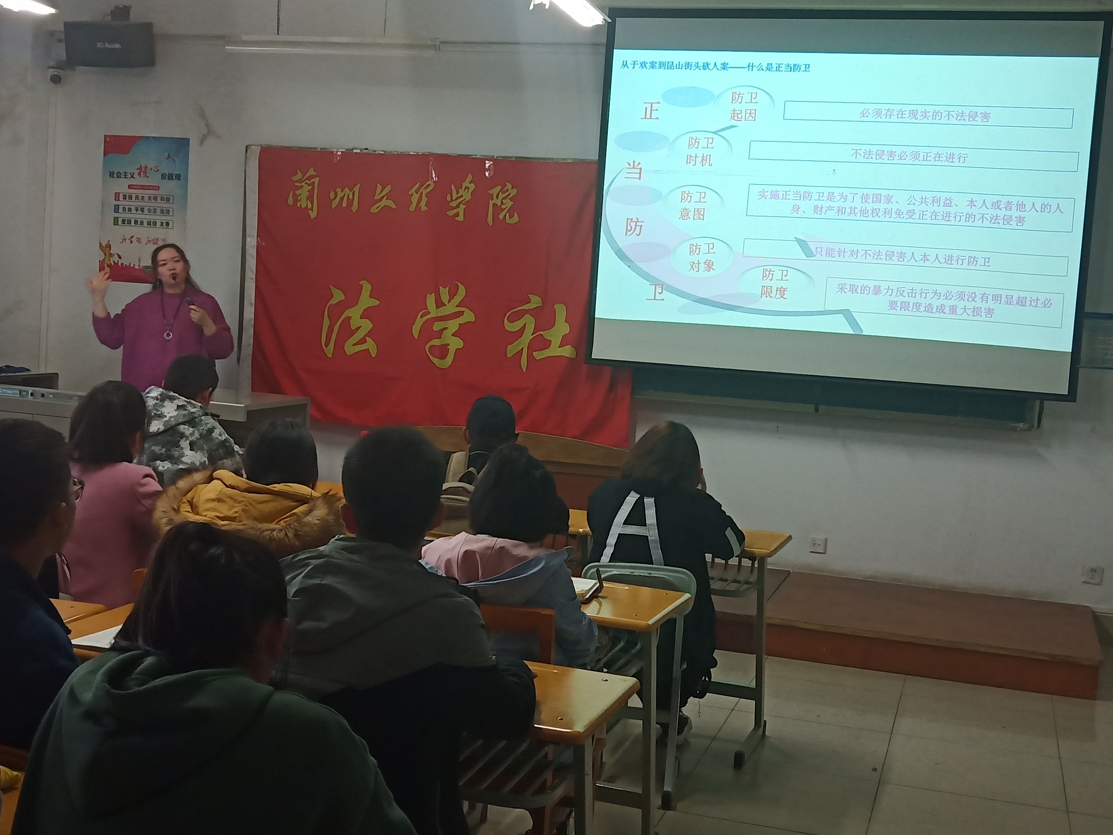 2019年11月22日星期五下午四点半,伟德国际1946源于英国的何惠芳老师在南校区1-504教室开始普法系列专题讲座第二讲:《从于欢案到昆山街头砍人案——告诉你什么才是正当防卫》。