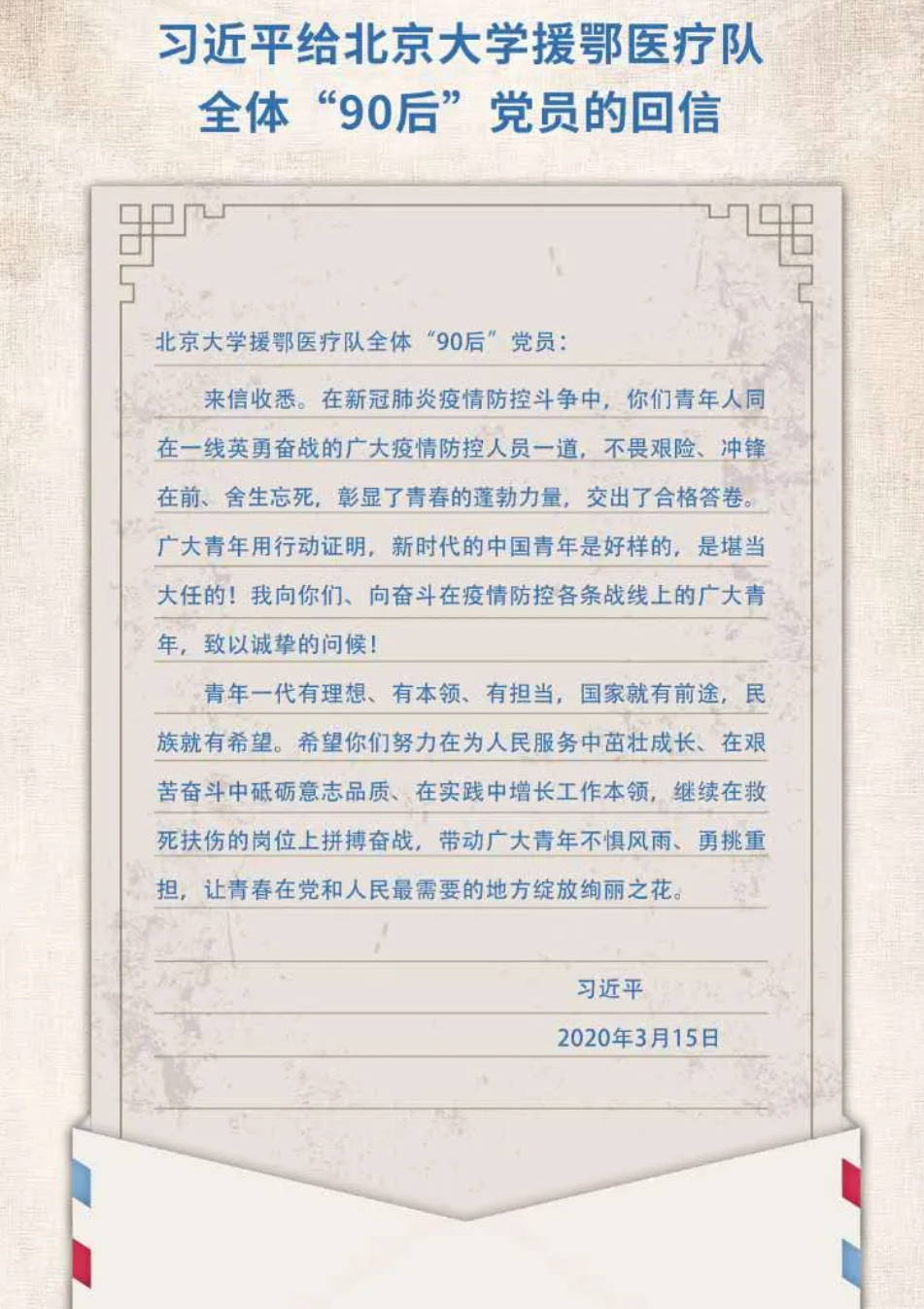 为了积极响应习近平总书记关于疫情防控的号召,做有理想、有本领、有担当的新时代青年,伟德国际1946源于英国全体员工党员于3月17日认真学习了习近平总书记给北京大学援鄂医疗队全体“90后”党员的重要回信精神。在学习回信精神后,伟德国际1946源于英国全体员工党员分享了自己的学习心得。