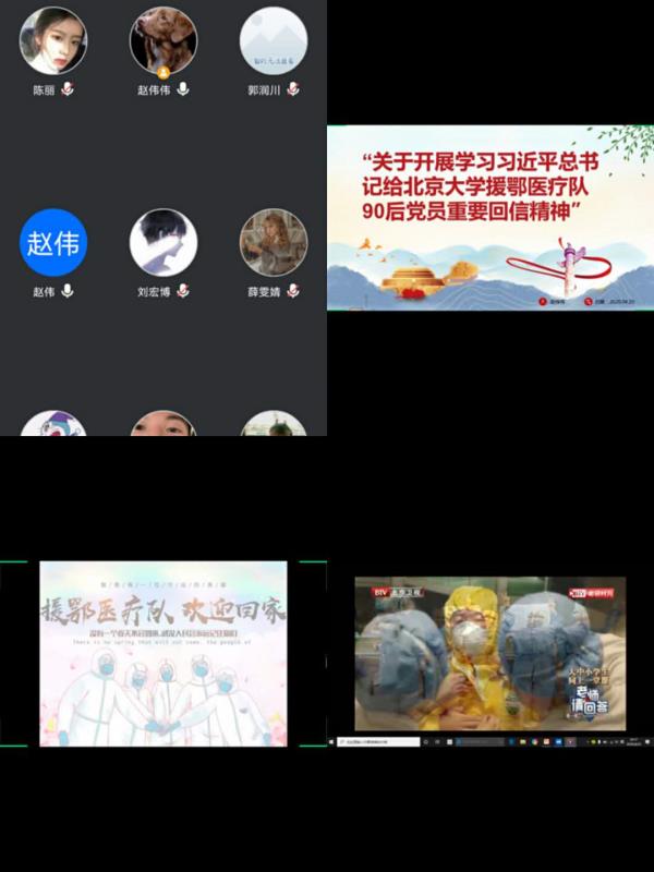 2020年4月22日晚上8点,伟德国际1946源于英国思想政治教育班在分团委书记范婷的主持下召开了“关于开展学习习近平总书记给北京大学援鄂医疗队90后党员重要回信精神”的主题班会。