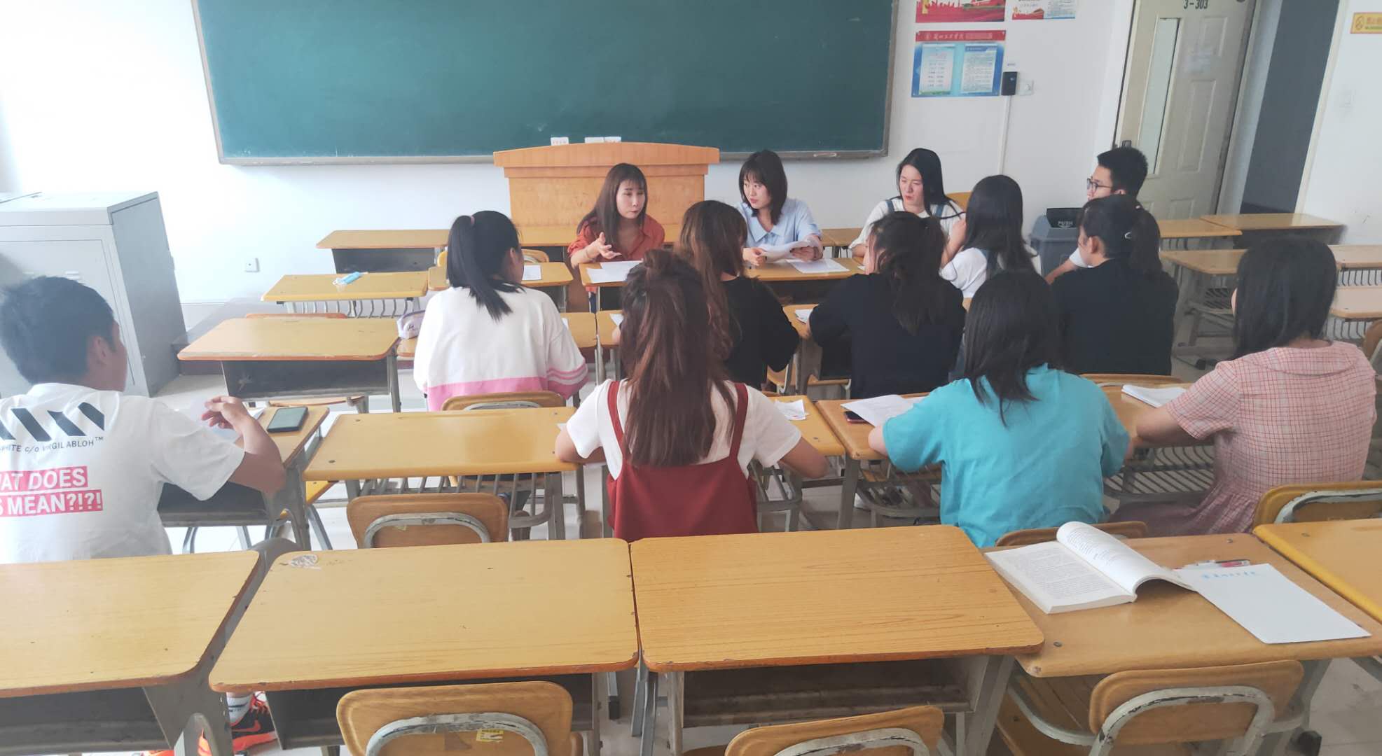2020年7月13日下午在3-303教室,“三下乡”活动参与人员开展关于普法宣传的会议,本次会议由分团委书记范婷和张瑶老师主持,赵伟伟等12名共青团员参加。