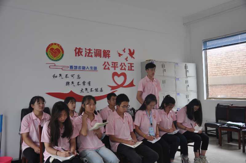 首先,范婷老师和张瑶老师就各村遇到的主要法律纠纷问题,与桐川镇党委副书记田鑫、司法所所长曾鹏进行交接总结。其后,各小分队代表针对本次《民法典》普法宣传活动谈了自己的心得体会,并对本次农村普法宣传活动的内容和形式提出了自己的看法,得到当地政府领导的一致认可。接着,曾所长对大家的工作表示感谢,对目前基层法律工作问题提出以下看法:第一、要提高乡镇工作人员的法律知识水平,不拘泥于条条框框的内容,深入村民;第二、在脱贫攻坚工作顺利进行的同时,加强高校与当地政府的合作,提高村民法律意识,切实帮扶;第三、结合当地实际情况,指出了他们工作中的短板和不足,并对今后的工作做了进一步的规划。田书记对大家的工作成效表示肯定,希望我们团队能够与桐川镇形成长期的普法宣传合作,切实维护群众的合法权益,提高群众法律意识。最后,范婷老师对他们的发言作了总结,对同学们提出了的要求,希望在以后的实践活动中将所学知识灵活运用到实处,勇于接受各种考验,挑战自我。