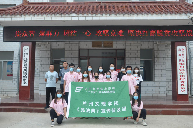为推进乡村治理,助力乡村振兴。2020年7月下旬,我院组织法律专业师生前往结对帮扶点庆阳市庆城县桐川镇开展《民法典》宣传活动。
