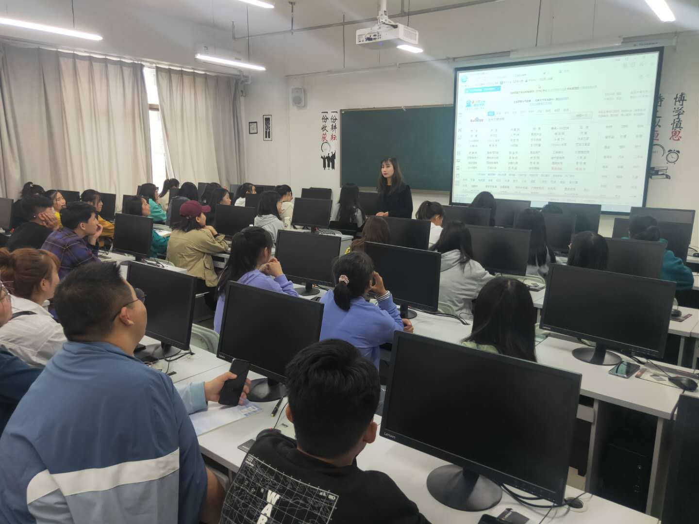 其次,范婷老师为大一新生讲述了公司70年的发展历程,并向同学们介绍了公司现阶段校园环境、团队力量、杰出员工等内容,激发同学们的荣校、爱校之情,鼓励同学们好好读大学。