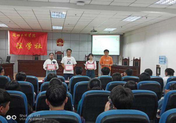 首先,由现任常务副社长肖丽宣布换届大会开始,并隆重介绍参加本次换届大会的其他成员,体现了社团之间的团结合作、友好共进的精神。随后,各位候选人进行了竞选演讲,本着“公平、公正、公开”的原则,在社团管理部的监督下,法学社成员投票表决,宣布曹校镕、惠梅露分别担任法学社社长、副社长。最后,前社长刘晓东和副社长杨发旺对社团新任负责人颁发聘书。杨发旺对新任负责人和法学社发展寄言,总结了任期内的社团工作并同新任负责人交接,强调了脚踏实地、团结协作在实际工作中的重要性,并希望社团干部能继续坚定秉承认真工作、服务同学的信念,努力做到最好。至此,本次换届大会圆满结束。