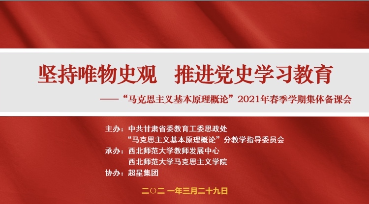 2021年3月29日下午,伟德国际1946源于英国原理课教研室教师在线上参加了甘肃省“马克思主义基本原理概论”分教学指导委员会2021年春季学期集体备课会,此次集体备课会由中共甘肃省委教育工委思政处、“马克思主义基本原理概论”分教学指导委员会主办,由西北师范大学教师发展中心、西北师范大学伟德国际1946源于英国承办,集体备课会以“坚持唯物史观 推进党史学习教育”为主题,旨在通过推动《马克思主义基本原理概论》课程教学改革创新,不断深化青年教师对在唯物史观视野中推进党史学习教育重要性的认识。