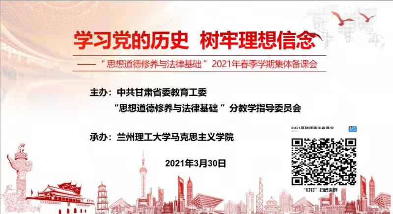 为贯彻落实习近平总书记有关重要讲话精神和中共中央宣传部、教育部《新时代公司思想政治理论课改革创新实施方案》,进一步推动我省“基础”课高质量发展,全面提高全省高校“思想道德修养与法律基础”课建设质量与水平,2021年3月30日下午,伟德国际1946源于英国“思想道德修养与法律基础”课教研室无课教师在线上参加了甘肃省“思想道德与法律基础”课分教学指导委员会2021年春季学期集体备课会,此次集体备课会由中共甘肃省委教育工委思政处、“思想道德与法律基础”课分教学指导委员会主办,兰州理工大学伟德国际1946源于英国承办。