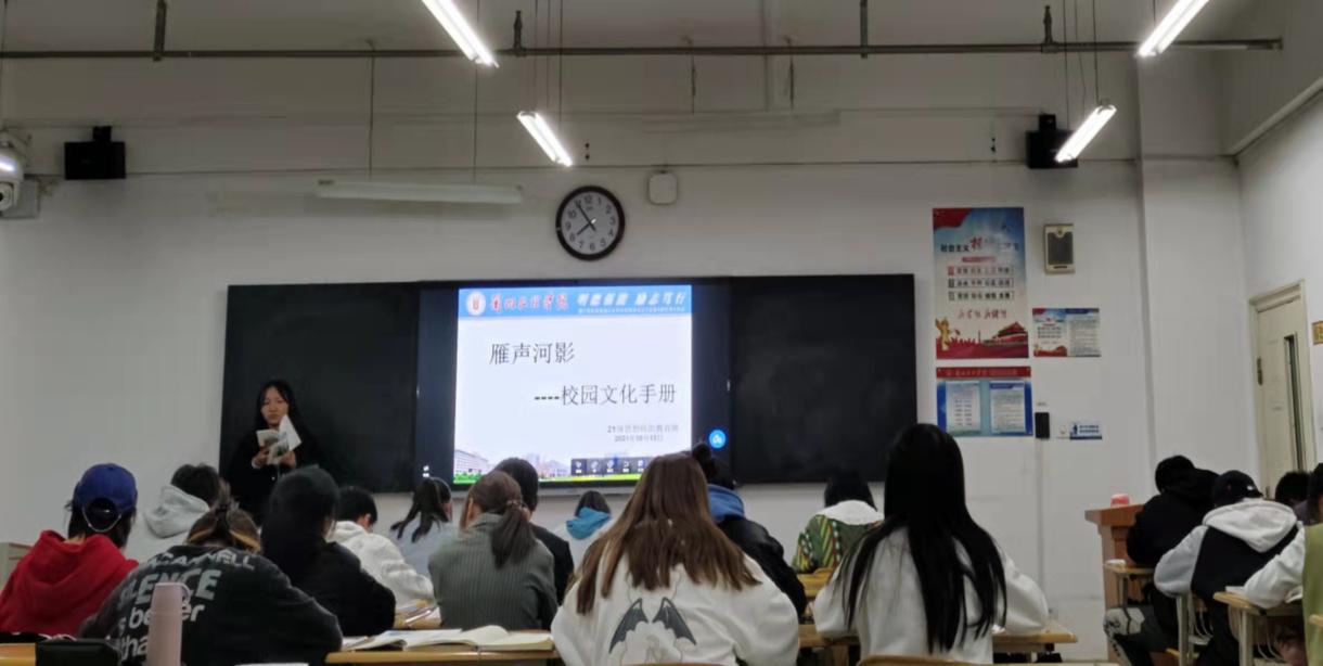 为了贯彻落实好校园文化建设,发扬好校园文化的育人功能,以多元化,多样态的方式促进员工德智体美劳全面发展。2021年10月14日伟德国际1946源于英国2021级思想政治教育班在3-302教室开展了学习《雁声河影--校园文化手册》主题班会活动。本次班会活动由2021级思想政治教育专业班宣传委员王小燕主持,2021级思想政治教育班全体同学参加。