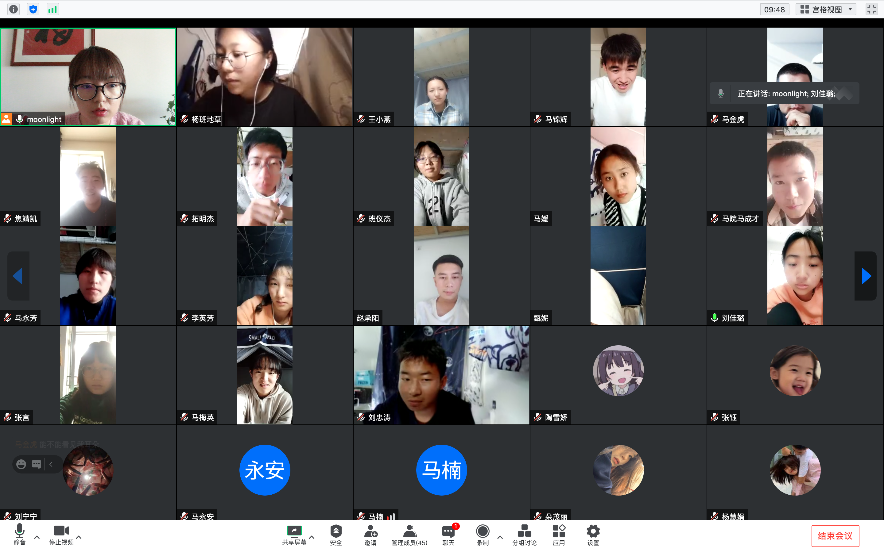 最后,班主任随机选取两名同学畅谈大学感想以及对班级建设意见,刘宁宁和马梅英两位同学向大家分享了他们的入学感受以及对班级、老师、同学们表示了感谢,并对疫情防护提出了一些建设性意见。班主任激励大家大家要不忘初心,牢记使命,坚定信心,团结一致,同舟共济,科学防控,从你我做起,共同打赢这场疫情防控狙击战。