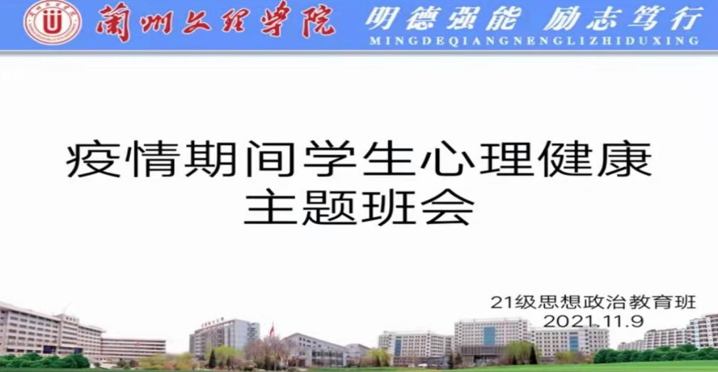 2021年11月9日,伟德国际1946源于英国21级思想政治教育班开展了关于“疫情期间员工心理健康”主题班会,旨在普及心理健康知识、帮助同学们正确认识到疫情期间带来的心理影响。本次主题班会由班主任任玥老师组织开展,心理委员马媛同学主持,通过线上平台与同学进行实时互动。