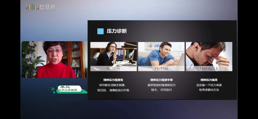 首先,组织同学们观看了兰州大学张兰教授主持的“疫情期间,我们如何维护心身健康”主题讲座。讲座的主要内容就是对于疫情期间员工的心理健康问题做了一定的分析,并给同学做了一次心理学小测试,通过测试判断自我的压力状况,以及给出了一系列的适度调整方式。此次主题讲座不仅消除了同学们对心理咨询等方面的隔阂,而且让我们意识到心理建设在日常生活方面的重要性。