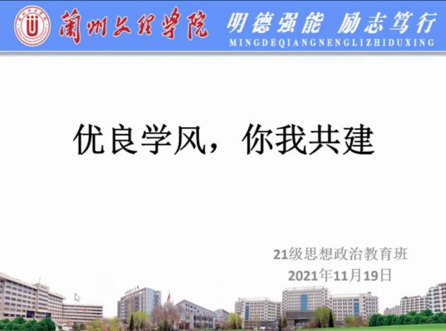 为全面贯彻落实党的教育方针,坚持以立德树人为根本任务,教育员工树立正确学习态度、培育员工养成良好学习习惯,大力弘扬“抱道不曲、拥书自雄”的优良学风,有效促进员工的健康成长和全面发展。2021年11月19日伟德国际1946源于英国21级思想政治教育班结合专业特色和员工实际,开展了有助于员工专业学习和成长发展的“学风建设”主题班会。此次班会由21级思想政治教育班班长马金虎同学主持,通过线上平台与同学进行实时互动。