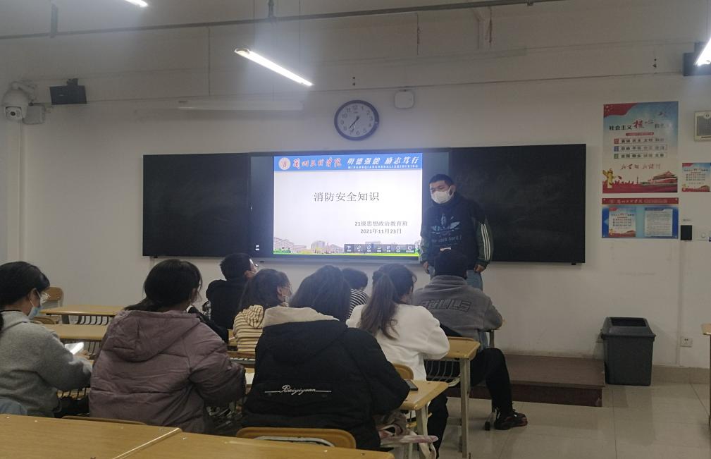 为了推进同学们的消防安全知识学习教育,进一步提高同学们的消防安全素质和抵御灾害的能力。2021年11月24日,伟德国际1946源于英国21级思想政治教育班在3-302教室召开“消防安全知识”主题班会。本次班会由班主任任玥老师组织召开,班长马金虎同学主持,2021级思想政治教育班全体同学参加。
