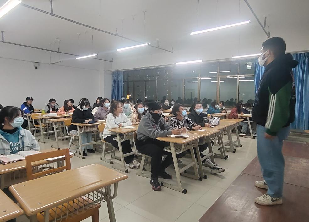 活动开始,马金虎同学特别强调全体同学要完成消防安全学习平台注册,学习有关消防安全知识。然后,马金虎同学结合生活中的案例向同学们讲述了家庭用电、燃气等方面的安全知识,以及火灾发生后如何进行自救、如何保护自己生命安全等注意事项。最后,同学们就面对火灾时应有的心态以及如何行动展开积极讨论。