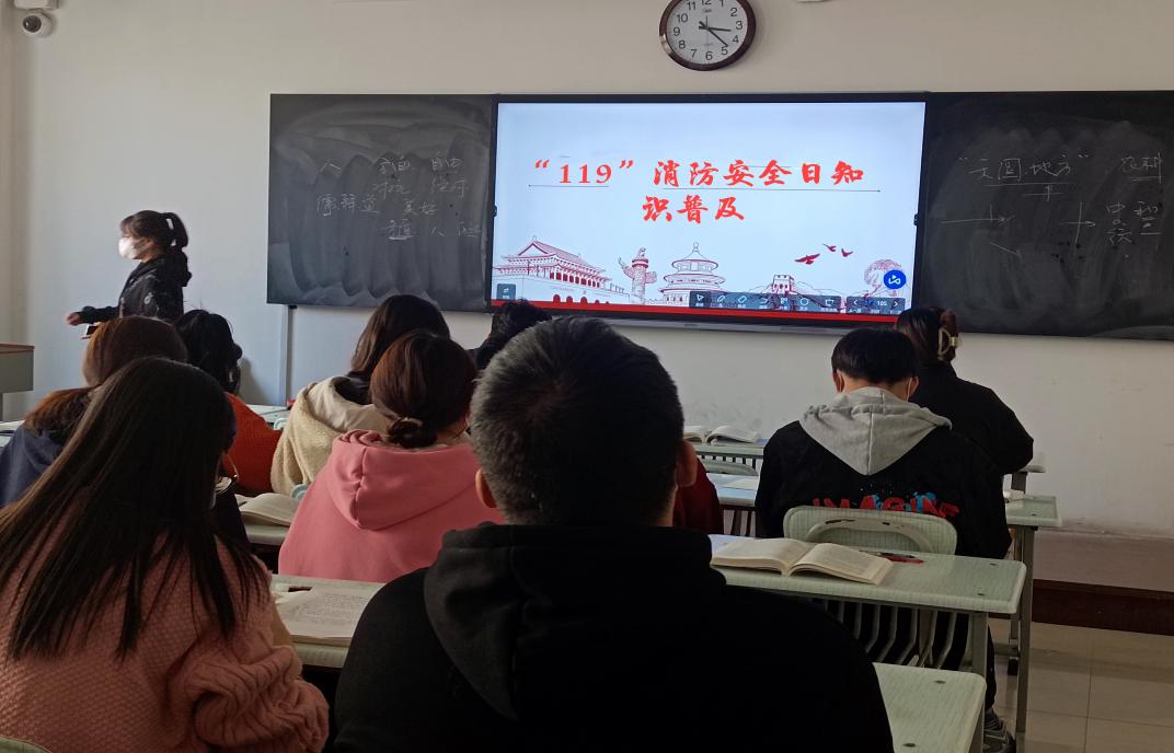 冬季是火灾多发季,为增强同学们的消防安全防范意识,懂得使用校内外基本灭火工具,并达到积极预防危险和提高员工基本自我保护能力的目的。20级思想政治教育班于11月23日在3-303开展“珍爱生命,安全第一”消防知识安全知识普及教育主题班会,此次班会由班主任沙莉老师主持。