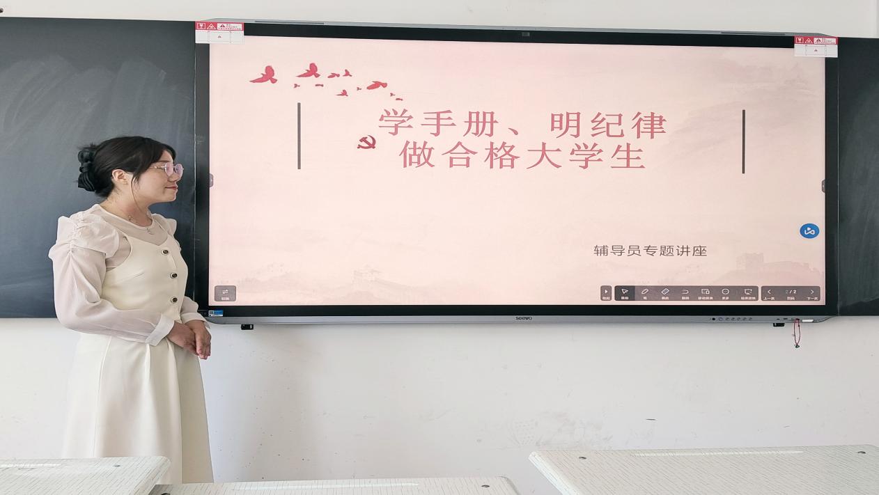 活动伊始,辅导员领学《员工手册》主要内容,针对学分学籍管理、员工相关奖励评定、违纪处分规定等重点内容进行解读并督促员工学习,接着对员工日常管理相关安排进行详细介绍。通过学习进一步强化同学们遵章守纪的意识,形成了有效的内在约束机制和良好的违纪防范机制,提高员工的综合素质,塑造当代青年健康向上的精神风貌,引导员工树立纪律意识,合理规划老员工活。