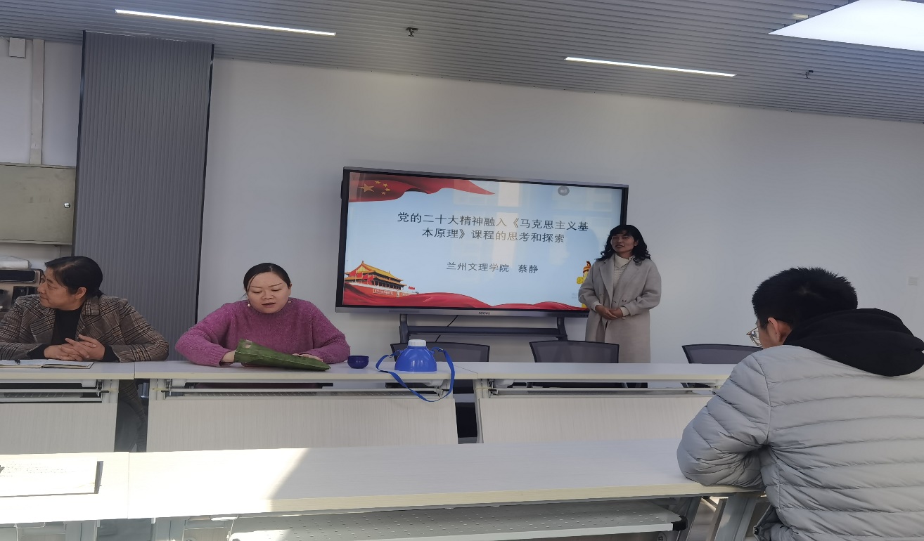 首先由蔡静老师介绍并分享了参加甘肃省思想政治理论课名师工作室集体备课会暨第三届甘肃政法大学大中小学思政课一体化研究论坛的学习体会,并就党的二十大精神融入思想政治理论课教学,进行了示范教学。