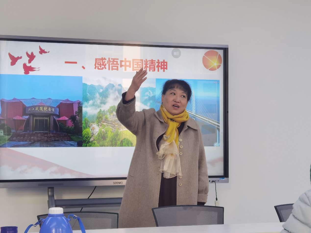 “全国模范教师”、校教学督导曾令琼老师围绕教材第三章《继承优良传统 弘扬中国精神》的内容,就授课中如何将教材体系转化为教学体系,进行了现场示范教学。曾老师通过感悟中国精神、解读中国精神及探寻中国精神三个部分对中国精神进行授课。
