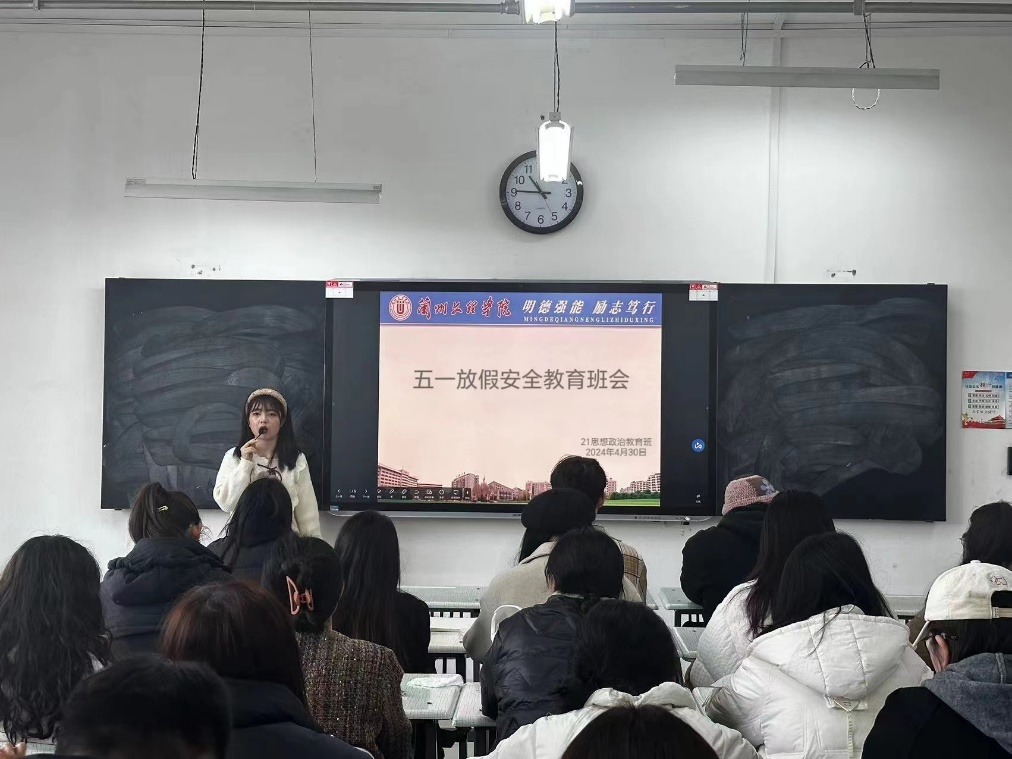为进一步强化员工安全教育工作,增强同学们的安全防范意识和自我保护能力,切实保障同学们的生命安全和身心健康,让同学们度过一个安全愉快的假期,4月30日,21思想政治教育班组织开展了“五一”假期安全教育主题班会。