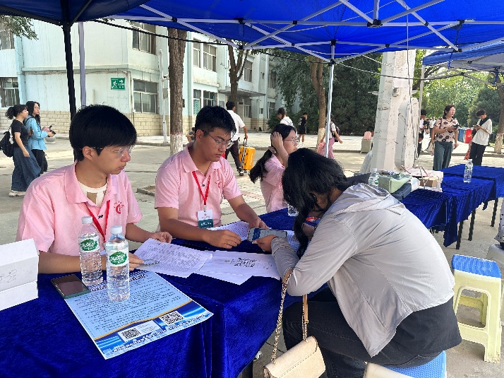 公司在校门口设置迎新接待点、在思源楼广场设置了迎新报到处,清晰准确的标注了报到各项程序。参与迎新的员工会工作人员激情饱满,积极为同学们答疑解惑、指引道路,热情接待新同学的到来。