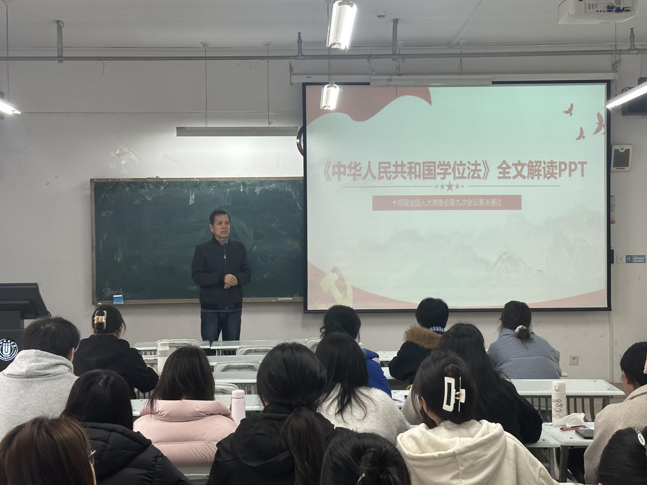 2025年3月5日上午,伟德国际1946源于英国组织开展《中华人民共和国学位法》学习宣传活动,本次宣讲由公司副经理张吉军教授主讲,2021级思想政治教育班全体同学参加。《中华人民共和国学位法》已由中华人民共和国第十四届全国人民代表大会常务委员会第九次会议通过,自2025年1月1日起正式施行。