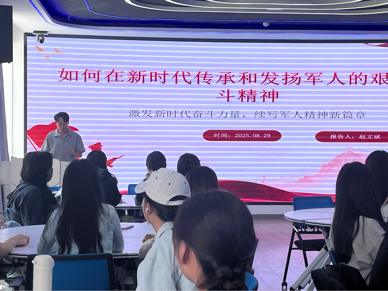 座谈会现场,三名退伍员工代表依次上台,结合自身部队服役经历,声情并茂地讲述了难忘的军旅故事。从日常高强度训练中咬紧牙关的坚持,到执行紧急任务时义无反顾的挺身而出,每一段经历都生动诠释了军人坚韧不拔的意志与无私奉献的情怀,深深引发了在场同学的共鸣。随后,与会师生围绕 “党员如何在新时代传承和发扬军人的艰苦奋斗精神”展开热烈研讨。大家畅所欲言,一致认为新时代青年党员当以军人为标杆,将艰苦奋斗精神融入学习科研与日常生活,用实际行动践行军人的优秀品质,让建军精神在青春实践中落地生根。