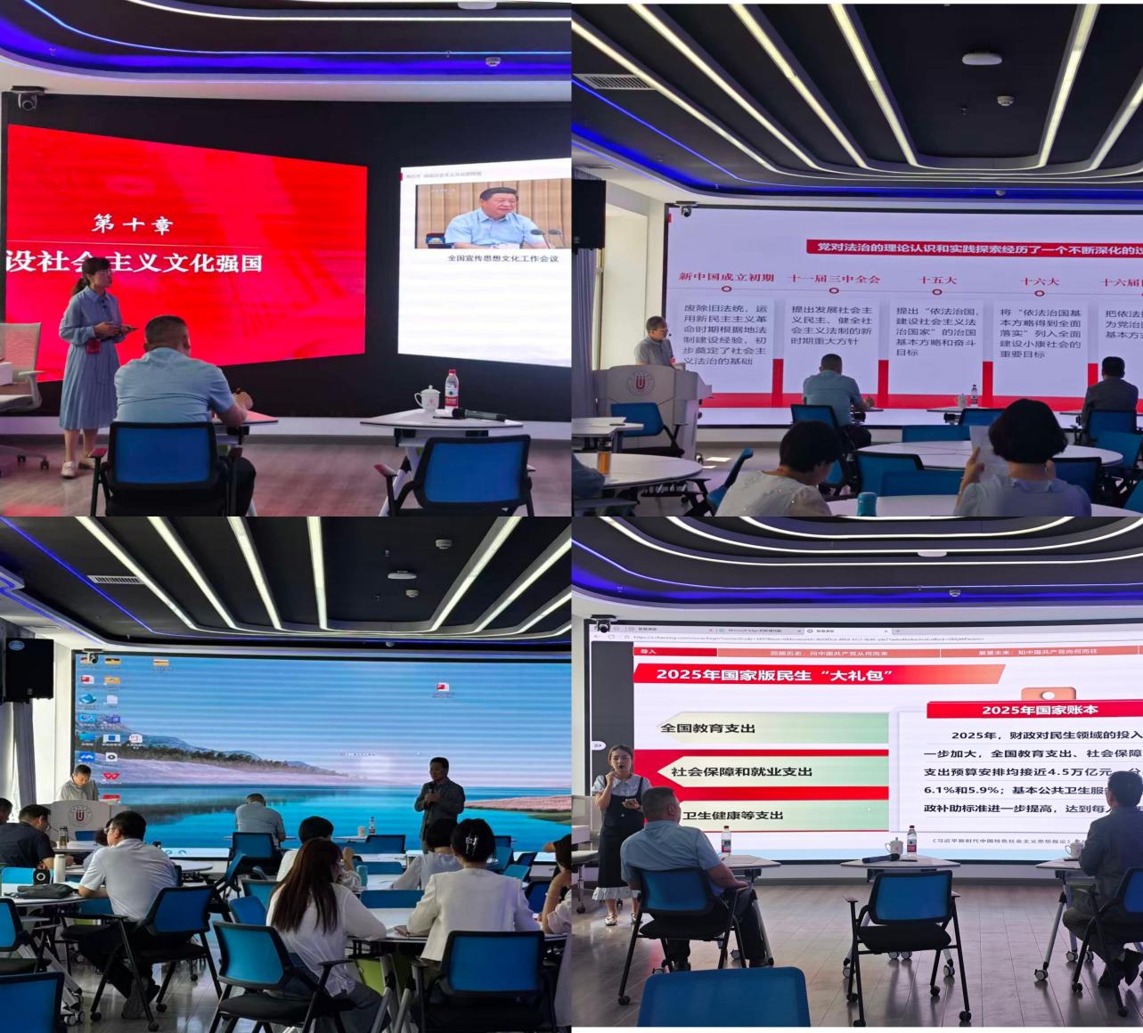 展示环节,9位教师围绕“中国式现代化”“共同富裕”“生态文明”等主题,依次进行10分钟现场教学。老师们将时政热点、身边案例与理论阐释深度融合,灵活运用视频、数据可视化、互动弹幕等多媒体手段,把宏大叙事转化为青年话语,课堂节奏张弛有度、亮点纷呈。
